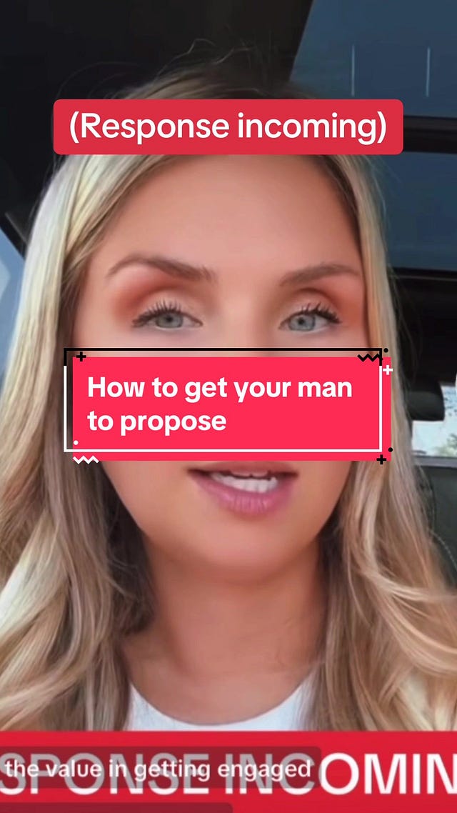 “…over half of the trends that go viral end up being co-opted by people showing off their male partners. I made it a point to point out how few trends are men showing off their girlfriends or wives: 99% of the time, it’s women showing off their boyfriends or husbands. I was keeping a 2024 tally and I eventually just gave up sometime in March: at this point, the app is the patriarchy itself.