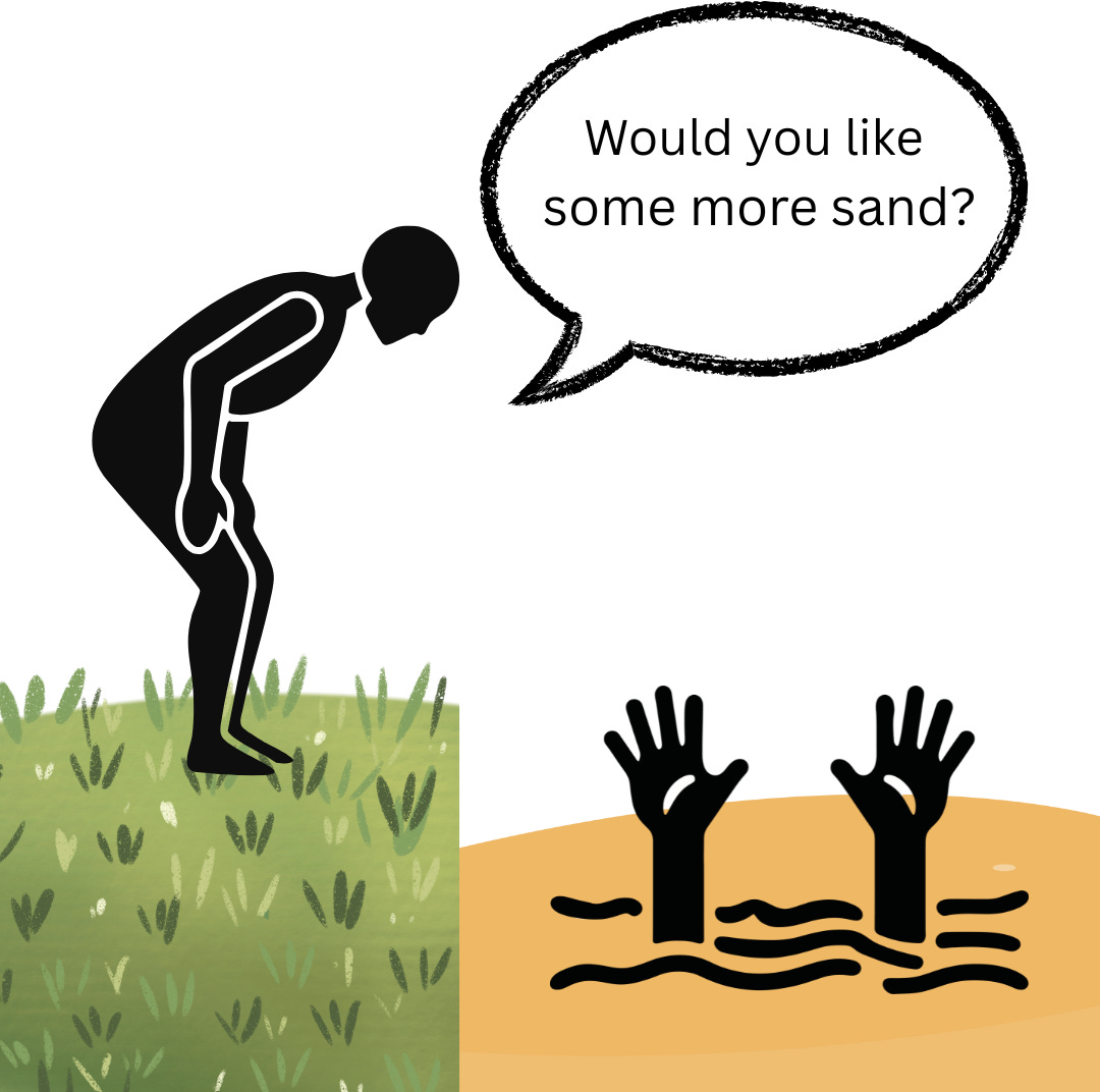 It’s as if they are up to their necks in quicksand and when they call out for rescue, instead of being handed a rope, they are handed more sand.