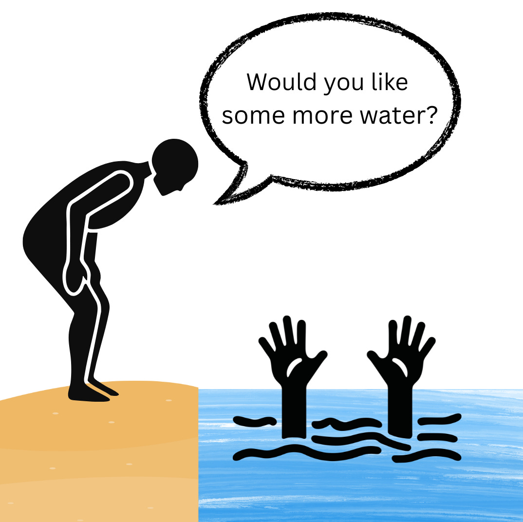 You’re suffocating in water? Here, have a bottle of water. Still drowning? How about …. even more water?